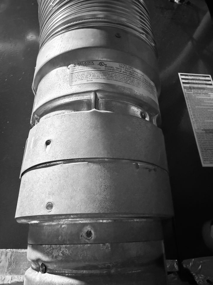 Water heater and furnace service call. Performed new flue B-vent install on Rheem water heater with Hart & Cooley B-vent. Enlarge combustion air opening for Durastar furnace. Fabricated sheet metal chase for combustion air opening with quarter inch screen. Replaced hot water heater expansion tank.