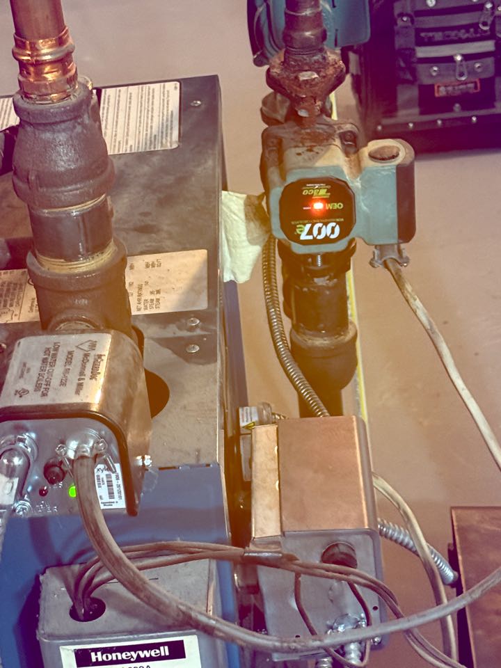 Gas fired hydronic boiler service call. Performed gas boiler leak repair on hydronic system in the city Winchester on Weil- McLean.