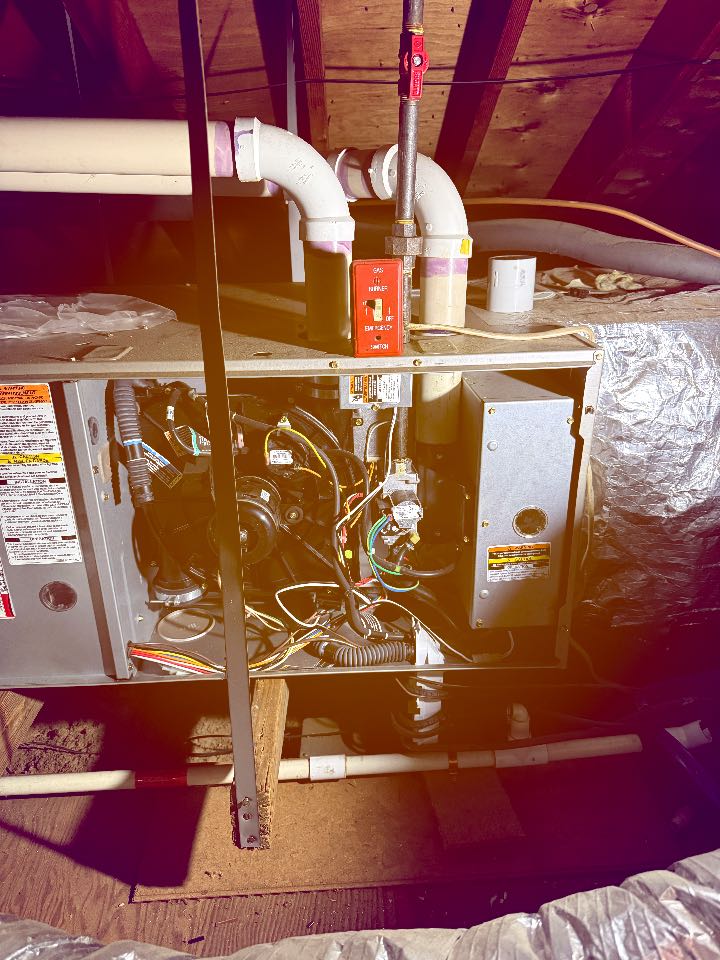 Gas furnace installation call. Performed high-efficiency gas furnace install on Rheem. Conversion to propane.